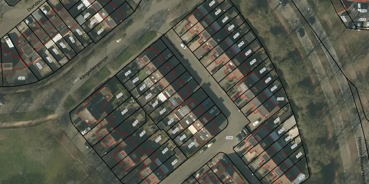 Clematisstraat 12 is gelegen op kadastraal perceel VLO00N2048. Deze kadastrale aanduiding is uniek en wordt gebruikt door het Kadaster om eigendomsrechten en andere zakelijke rechten vast te leggen. Het perceel maakt onderdeel uit van de kadastrale gemeente Venlo.