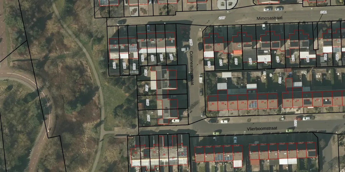 Cotoneasterstraat 5 is gelegen op kadastraal perceel VLO00N2187. Deze kadastrale aanduiding is uniek en wordt gebruikt door het Kadaster om eigendomsrechten en andere zakelijke rechten vast te leggen. Het perceel maakt onderdeel uit van de kadastrale gemeente Venlo.