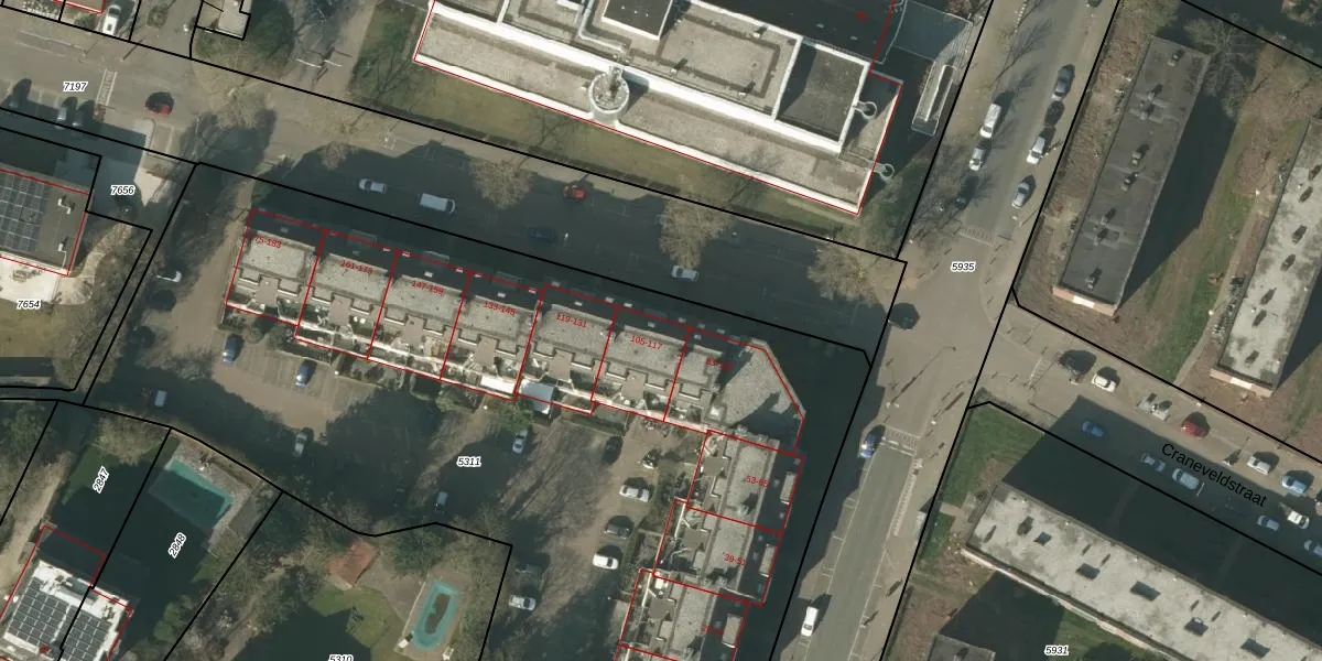 Craneveldstraat 115 is gelegen op kadastraal perceel VLO00A5311. Deze kadastrale aanduiding is uniek en wordt gebruikt door het Kadaster om eigendomsrechten en andere zakelijke rechten vast te leggen. Het perceel maakt onderdeel uit van de kadastrale gemeente Venlo.