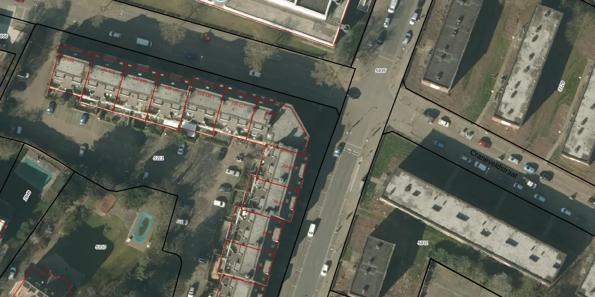 Craneveldstraat 99 is gelegen op kadastraal perceel VLO00A5311. Deze kadastrale aanduiding is uniek en wordt gebruikt door het Kadaster om eigendomsrechten en andere zakelijke rechten vast te leggen. Het perceel maakt onderdeel uit van de kadastrale gemeente Venlo.