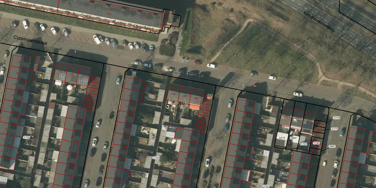 Cypressenstraat 33 is gelegen op kadastraal perceel VLO00M3758. Deze kadastrale aanduiding is uniek en wordt gebruikt door het Kadaster om eigendomsrechten en andere zakelijke rechten vast te leggen. Het perceel maakt onderdeel uit van de kadastrale gemeente Venlo.