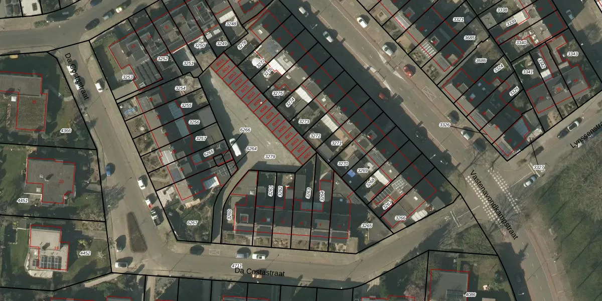 Da Costastraat 8002 is gelegen op kadastraal perceel VLO00M3279. Deze kadastrale aanduiding is uniek en wordt gebruikt door het Kadaster om eigendomsrechten en andere zakelijke rechten vast te leggen. Het perceel maakt onderdeel uit van de kadastrale gemeente Venlo.