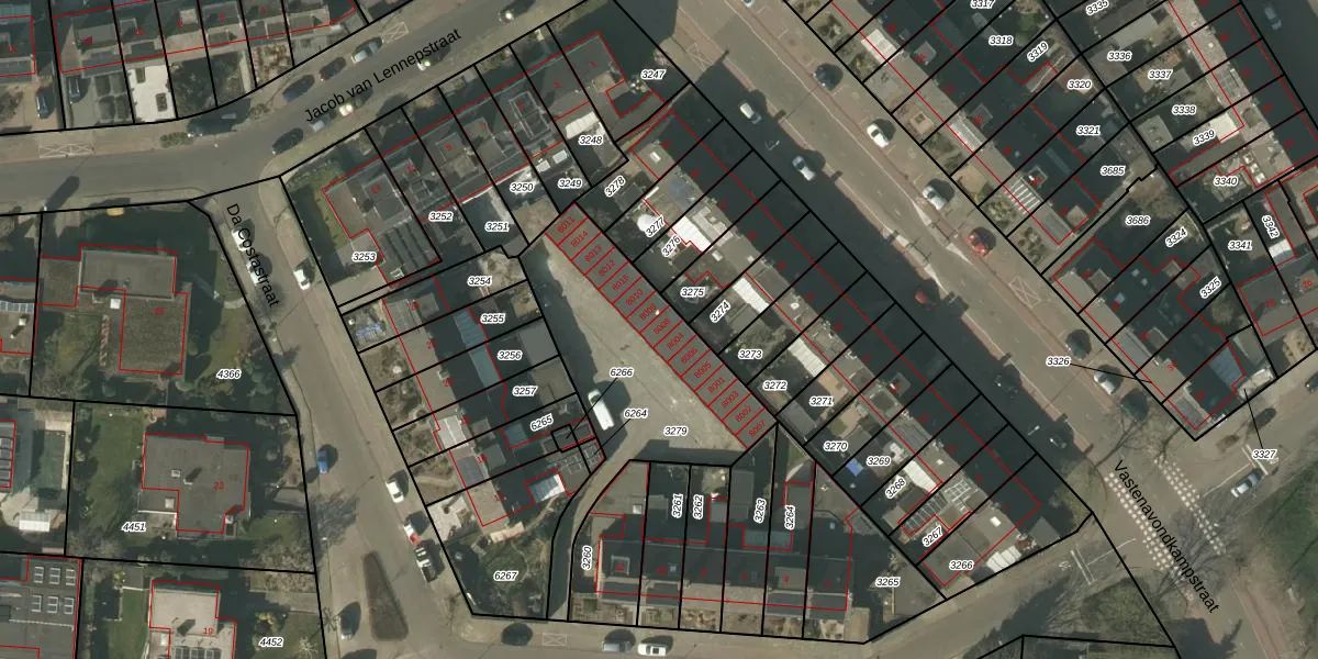 Da Costastraat 8008 is gelegen op kadastraal perceel VLO00M3279. Deze kadastrale aanduiding is uniek en wordt gebruikt door het Kadaster om eigendomsrechten en andere zakelijke rechten vast te leggen. Het perceel maakt onderdeel uit van de kadastrale gemeente Venlo.