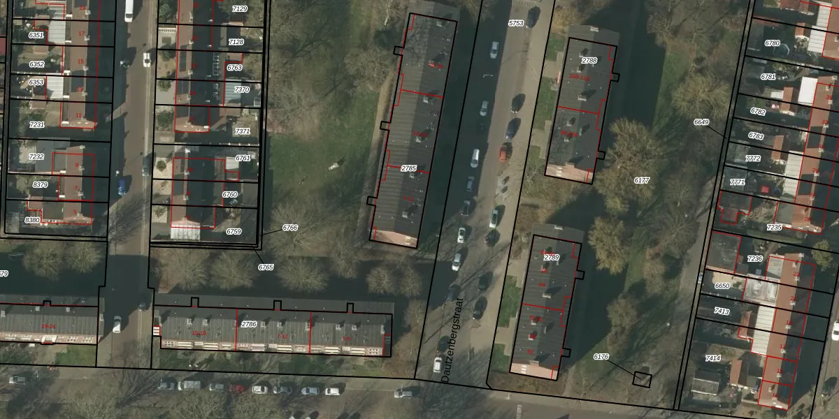 Het perceel waarop Dautzenbergstraat 3 staat heeft een oppervlakte van 640 m². Dit is een groot perceel. De perceeloppervlakte wordt geregistreerd door het Kadaster. Gedetailleerde informatie over de maten van dit perceel kunt u vinden in het rapport Kadastrale kaart met maatvoering van Dautzenbergstraat 3.