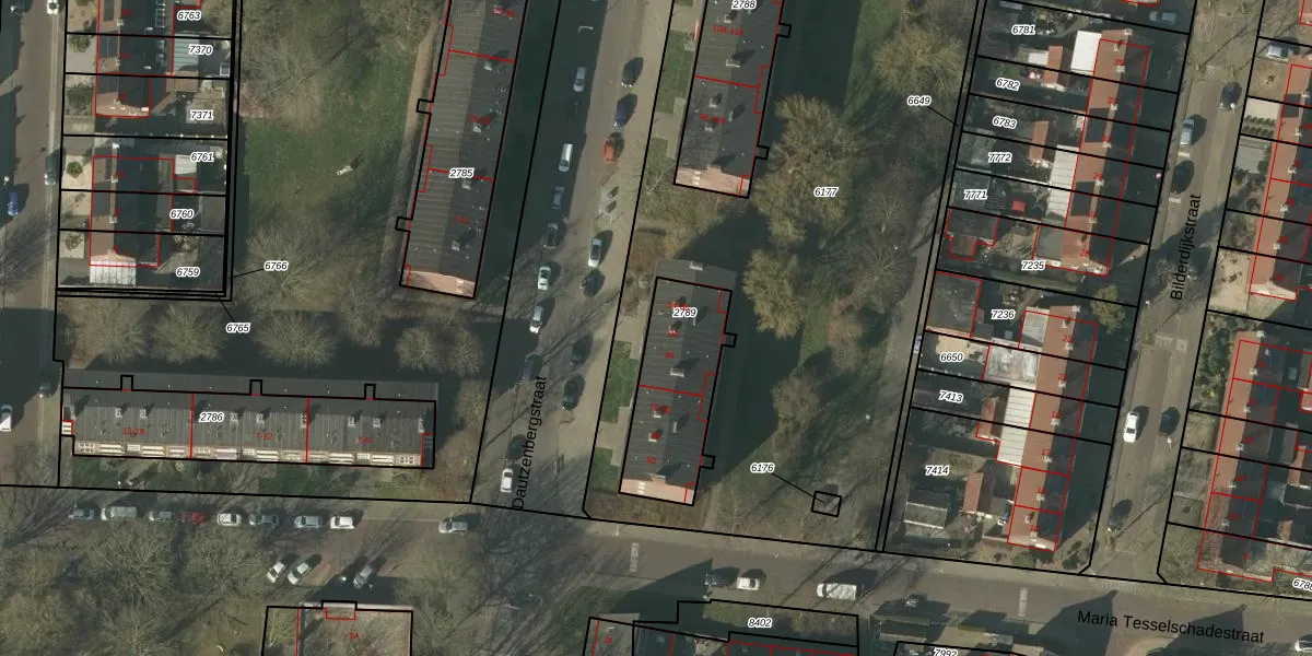 Het perceel waarop Dautzenbergstraat 90 staat heeft een oppervlakte van 388 m². Dit is een groot perceel. De perceeloppervlakte wordt geregistreerd door het Kadaster. Gedetailleerde informatie over de maten van dit perceel kunt u vinden in het rapport Kadastrale kaart met maatvoering van Dautzenbergstraat 90.