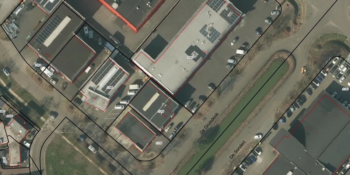 Het perceel waarop De Gruisdonk 31 staat heeft een oppervlakte van 3885 m². Dit is een zeer groot perceel. De perceeloppervlakte wordt geregistreerd door het Kadaster. Gedetailleerde informatie over de maten van dit perceel kunt u vinden in het rapport Kadastrale kaart met maatvoering van De Gruisdonk 31.