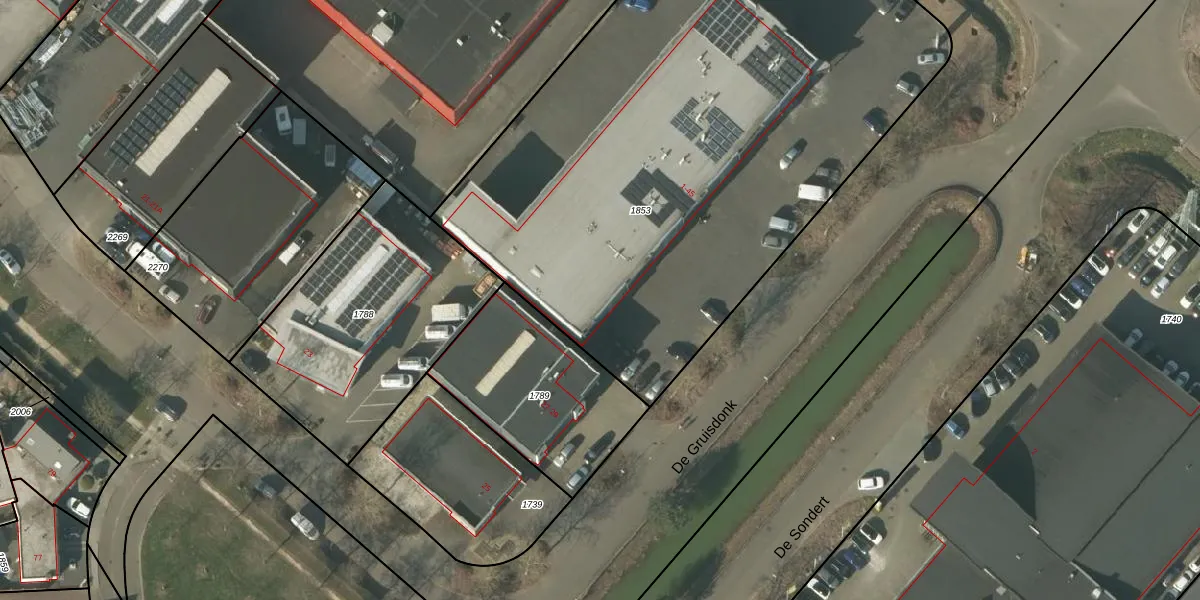 Het perceel waarop De Gruisdonk 33 staat heeft een oppervlakte van 3885 m². Dit is een zeer groot perceel. De perceeloppervlakte wordt geregistreerd door het Kadaster. Gedetailleerde informatie over de maten van dit perceel kunt u vinden in het rapport Kadastrale kaart met maatvoering van De Gruisdonk 33.
