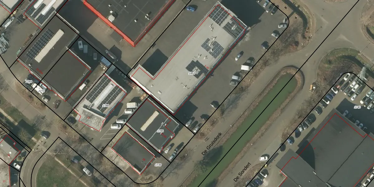 Het perceel waarop De Gruisdonk 37 staat heeft een oppervlakte van 3885 m². Dit is een zeer groot perceel. De perceeloppervlakte wordt geregistreerd door het Kadaster. Gedetailleerde informatie over de maten van dit perceel kunt u vinden in het rapport Kadastrale kaart met maatvoering van De Gruisdonk 37.