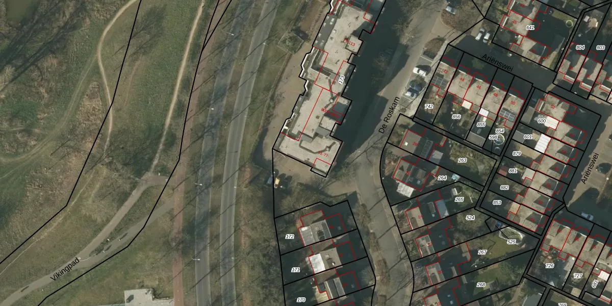 Het perceel waarop De Roskam 63 staat heeft een oppervlakte van 1390 m². Dit is een zeer groot perceel. De perceeloppervlakte wordt geregistreerd door het Kadaster. Gedetailleerde informatie over de maten van dit perceel kunt u vinden in het rapport Kadastrale kaart met maatvoering van De Roskam 63.