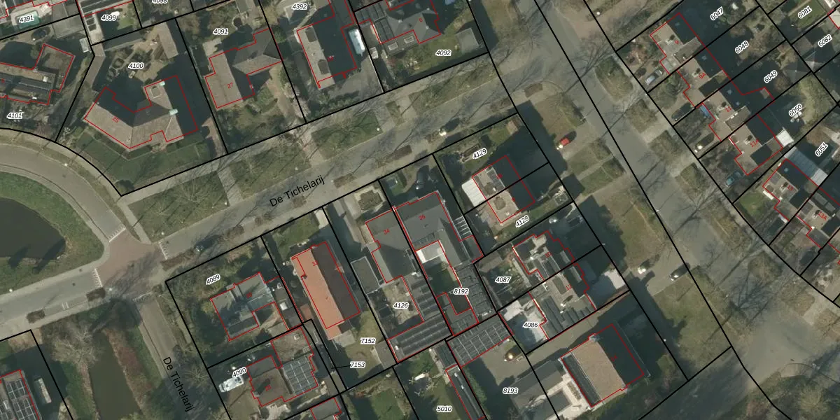 De Tichelarij 36 is gelegen op kadastraal perceel VLO00D8192. Deze kadastrale aanduiding is uniek en wordt gebruikt door het Kadaster om eigendomsrechten en andere zakelijke rechten vast te leggen. Het perceel maakt onderdeel uit van de kadastrale gemeente Venlo.