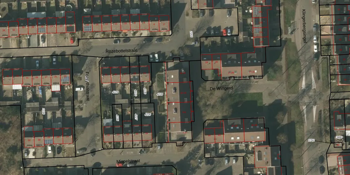 De Wingerd 13 is gelegen op kadastraal perceel VLO00N4228. Deze kadastrale aanduiding is uniek en wordt gebruikt door het Kadaster om eigendomsrechten en andere zakelijke rechten vast te leggen. Het perceel maakt onderdeel uit van de kadastrale gemeente Venlo.