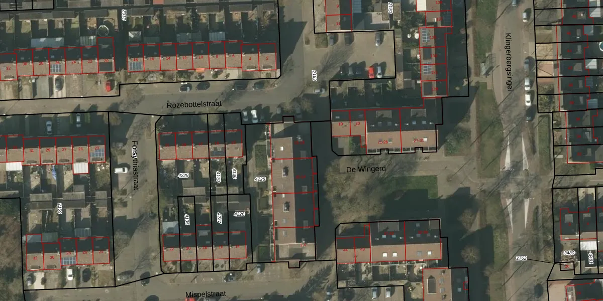 De Wingerd 15 is gelegen op kadastraal perceel VLO00N4228. Deze kadastrale aanduiding is uniek en wordt gebruikt door het Kadaster om eigendomsrechten en andere zakelijke rechten vast te leggen. Het perceel maakt onderdeel uit van de kadastrale gemeente Venlo.