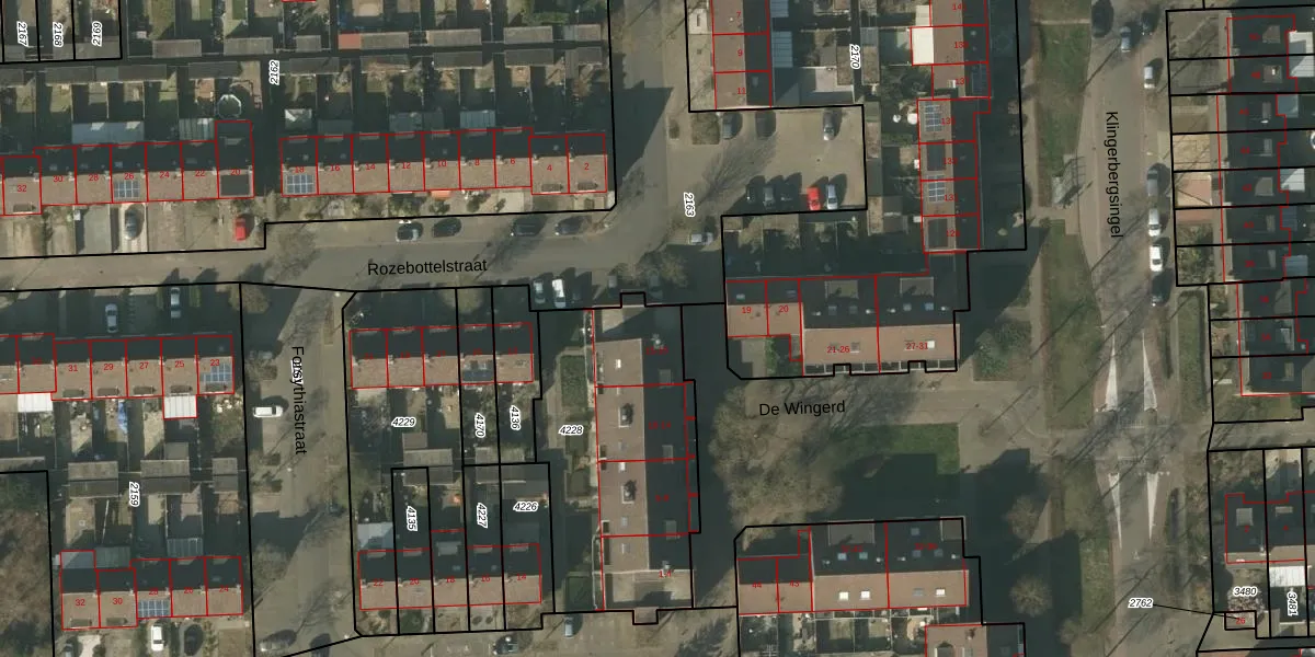 De Wingerd 18 is gelegen op kadastraal perceel VLO00N4228. Deze kadastrale aanduiding is uniek en wordt gebruikt door het Kadaster om eigendomsrechten en andere zakelijke rechten vast te leggen. Het perceel maakt onderdeel uit van de kadastrale gemeente Venlo.