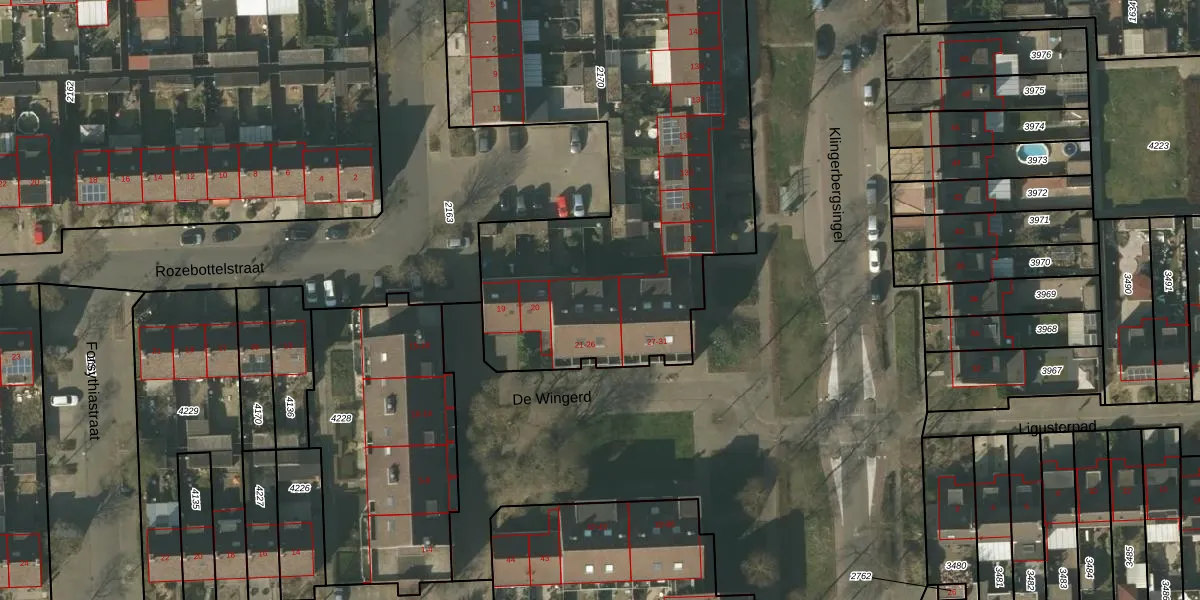De Wingerd 26 is gelegen op kadastraal perceel VLO00N2170. Deze kadastrale aanduiding is uniek en wordt gebruikt door het Kadaster om eigendomsrechten en andere zakelijke rechten vast te leggen. Het perceel maakt onderdeel uit van de kadastrale gemeente Venlo.