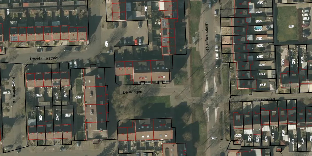 De Wingerd 27 is gelegen op kadastraal perceel VLO00N2170. Deze kadastrale aanduiding is uniek en wordt gebruikt door het Kadaster om eigendomsrechten en andere zakelijke rechten vast te leggen. Het perceel maakt onderdeel uit van de kadastrale gemeente Venlo.