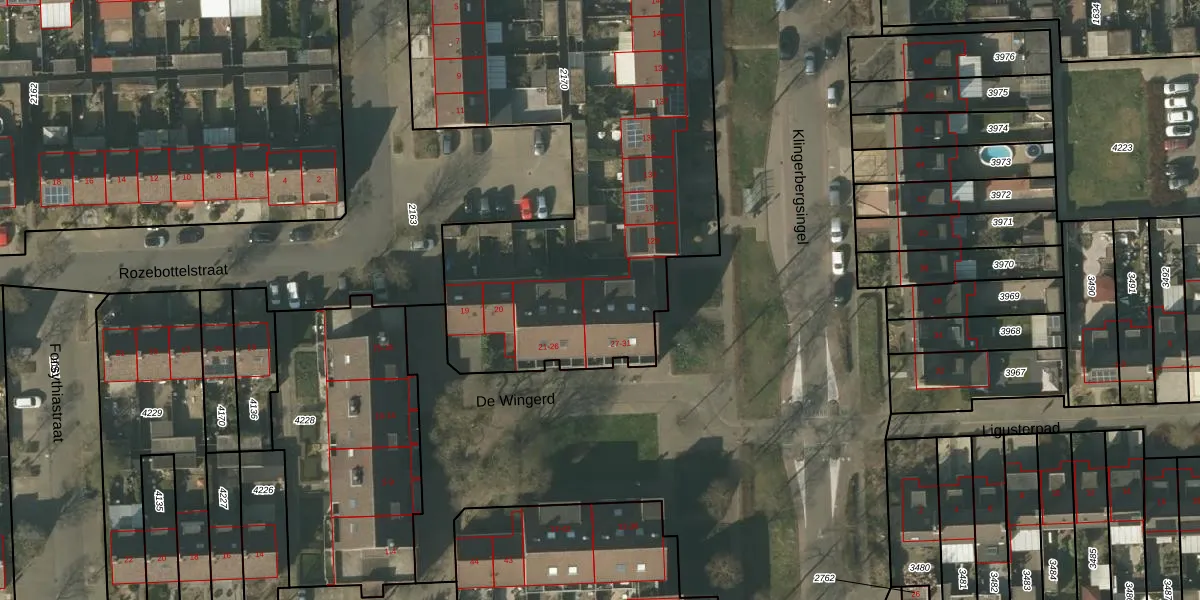 De Wingerd 29 is gelegen op kadastraal perceel VLO00N2170. Deze kadastrale aanduiding is uniek en wordt gebruikt door het Kadaster om eigendomsrechten en andere zakelijke rechten vast te leggen. Het perceel maakt onderdeel uit van de kadastrale gemeente Venlo.