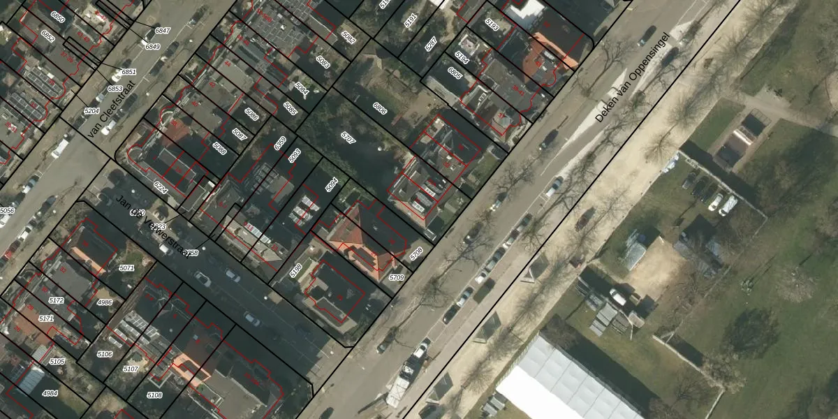 Deken van Oppensingel 31 is gelegen op kadastraal perceel VLO00I5707. Deze kadastrale aanduiding is uniek en wordt gebruikt door het Kadaster om eigendomsrechten en andere zakelijke rechten vast te leggen. Het perceel maakt onderdeel uit van de kadastrale gemeente Venlo.