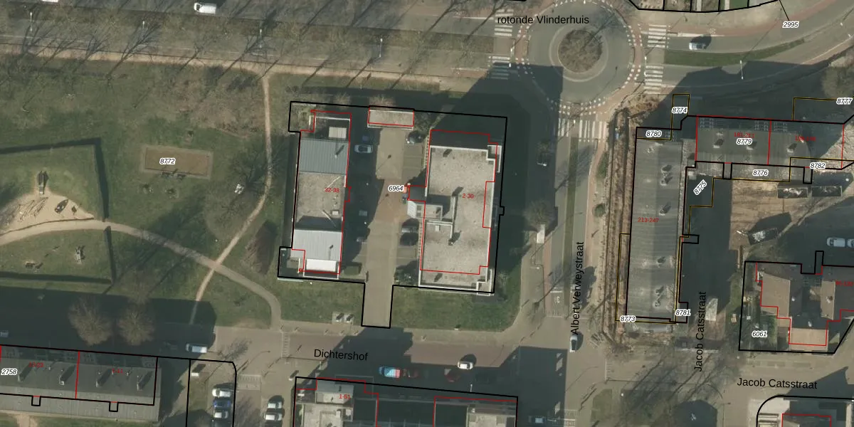 Dichtershof 24 is gelegen op kadastraal perceel VLO00M6964. Deze kadastrale aanduiding is uniek en wordt gebruikt door het Kadaster om eigendomsrechten en andere zakelijke rechten vast te leggen. Het perceel maakt onderdeel uit van de kadastrale gemeente Venlo.