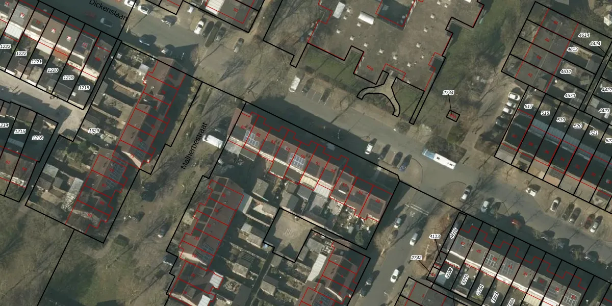 Het perceel waarop Dickenslaan 59 staat heeft een oppervlakte van 4870 m². Dit is een zeer groot perceel. De perceeloppervlakte wordt geregistreerd door het Kadaster. Gedetailleerde informatie over de maten van dit perceel kunt u vinden in het rapport Kadastrale kaart met maatvoering van Dickenslaan 59.