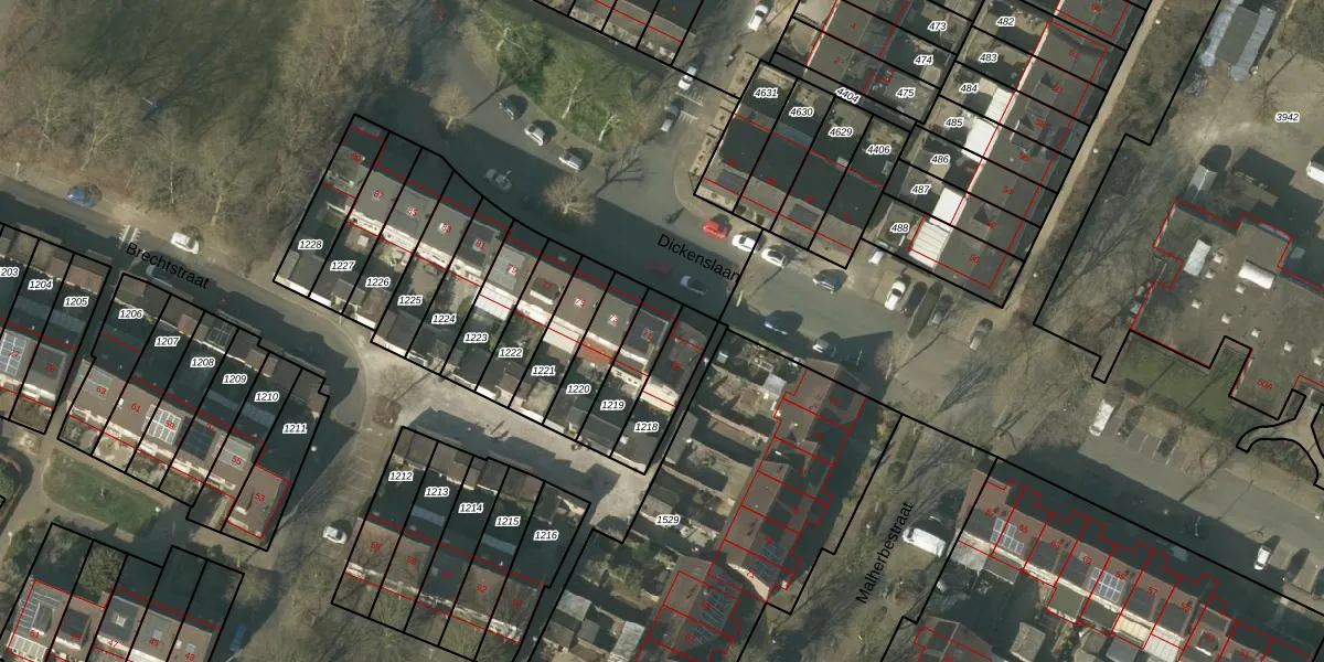 Gebruik de zoekbalk of klik op een perceel voor informatie over de adressen binnen dit perceel.