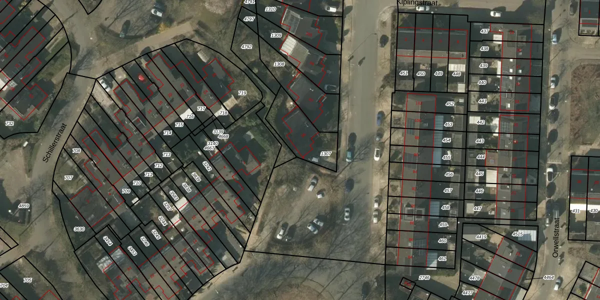 Gebruik de zoekbalk of klik op een perceel voor informatie over de adressen binnen dit perceel.