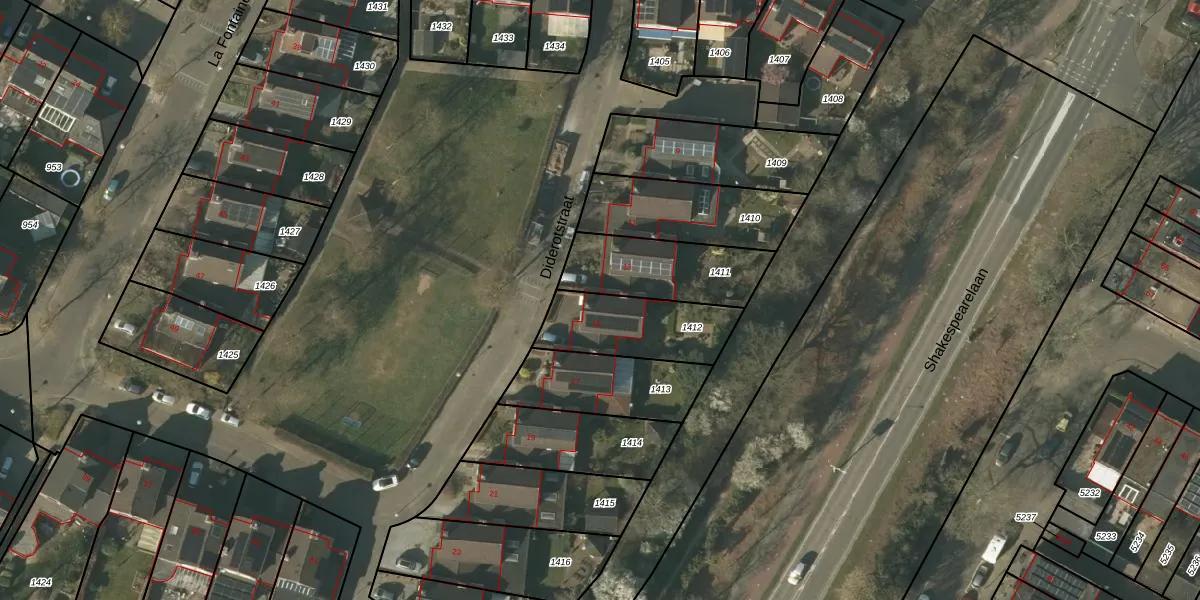 Diderotstraat 15 is gelegen op kadastraal perceel VLO00N1412. Deze kadastrale aanduiding is uniek en wordt gebruikt door het Kadaster om eigendomsrechten en andere zakelijke rechten vast te leggen. Het perceel maakt onderdeel uit van de kadastrale gemeente Venlo.