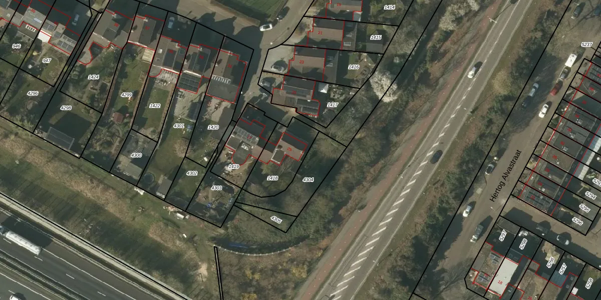 Gebruik de zoekbalk of klik op een perceel voor informatie over de adressen binnen dit perceel.