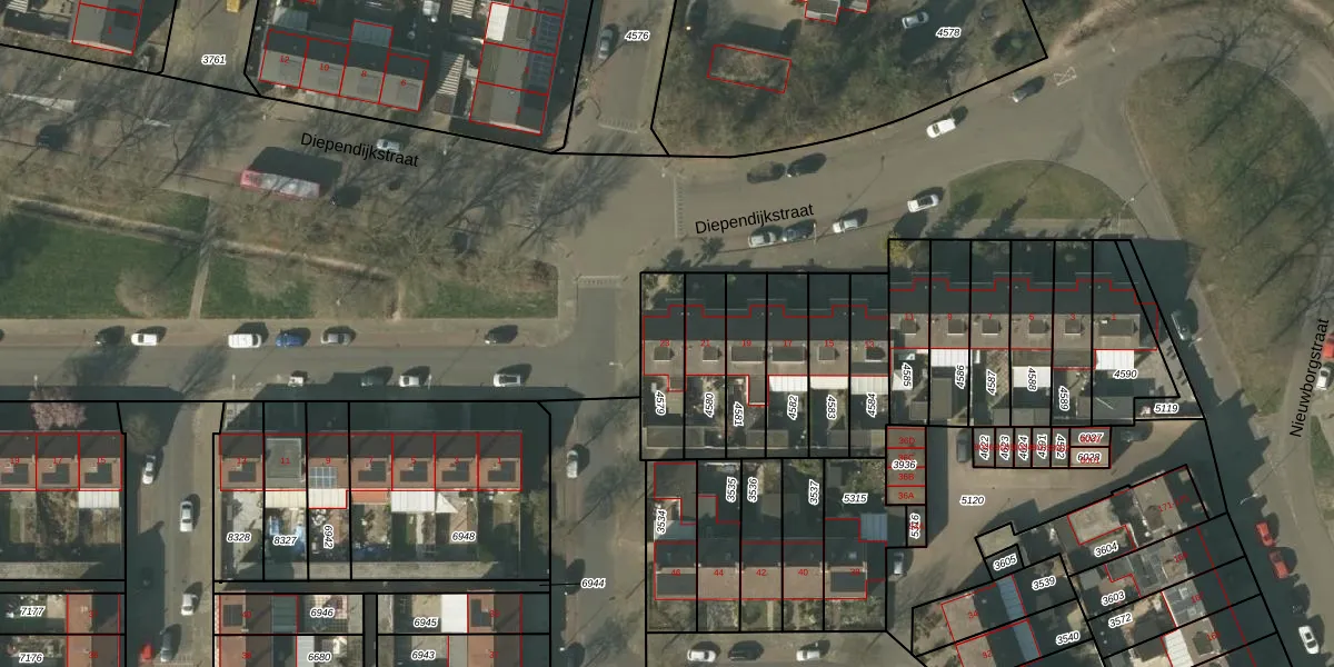 Gebruik de zoekbalk of klik op een perceel voor informatie over de adressen binnen dit perceel.