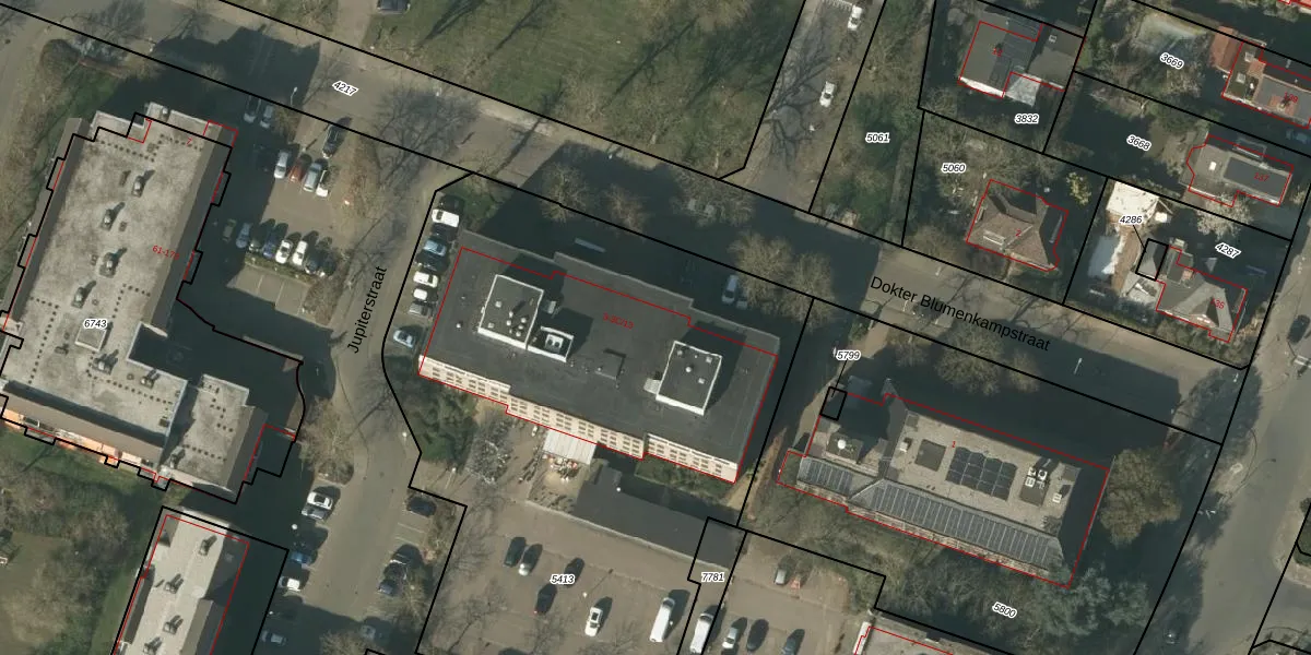 Het perceel waarop Dokter Blumenkampstraat 3-C-1 staat heeft een oppervlakte van 3550 m². Dit is een zeer groot perceel. De perceeloppervlakte wordt geregistreerd door het Kadaster. Gedetailleerde informatie over de maten van dit perceel kunt u vinden in het rapport Kadastrale kaart met maatvoering van Dokter Blumenkampstraat 3-C-1.