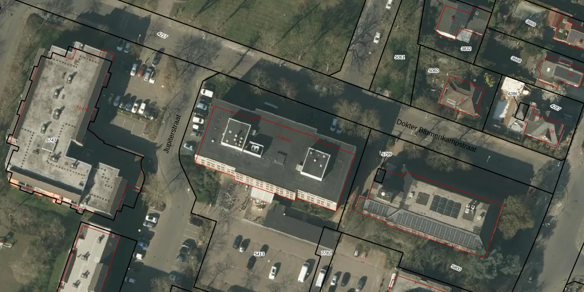 Het perceel waarop Dokter Blumenkampstraat 3-A-1 staat heeft een oppervlakte van 3550 m². Dit is een zeer groot perceel. De perceeloppervlakte wordt geregistreerd door het Kadaster. Gedetailleerde informatie over de maten van dit perceel kunt u vinden in het rapport Kadastrale kaart met maatvoering van Dokter Blumenkampstraat 3-A-1.