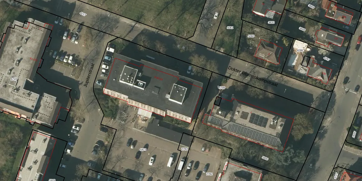 Het perceel waarop Dokter Blumenkampstraat 3-A-6 staat heeft een oppervlakte van 3550 m². Dit is een zeer groot perceel. De perceeloppervlakte wordt geregistreerd door het Kadaster. Gedetailleerde informatie over de maten van dit perceel kunt u vinden in het rapport Kadastrale kaart met maatvoering van Dokter Blumenkampstraat 3-A-6.