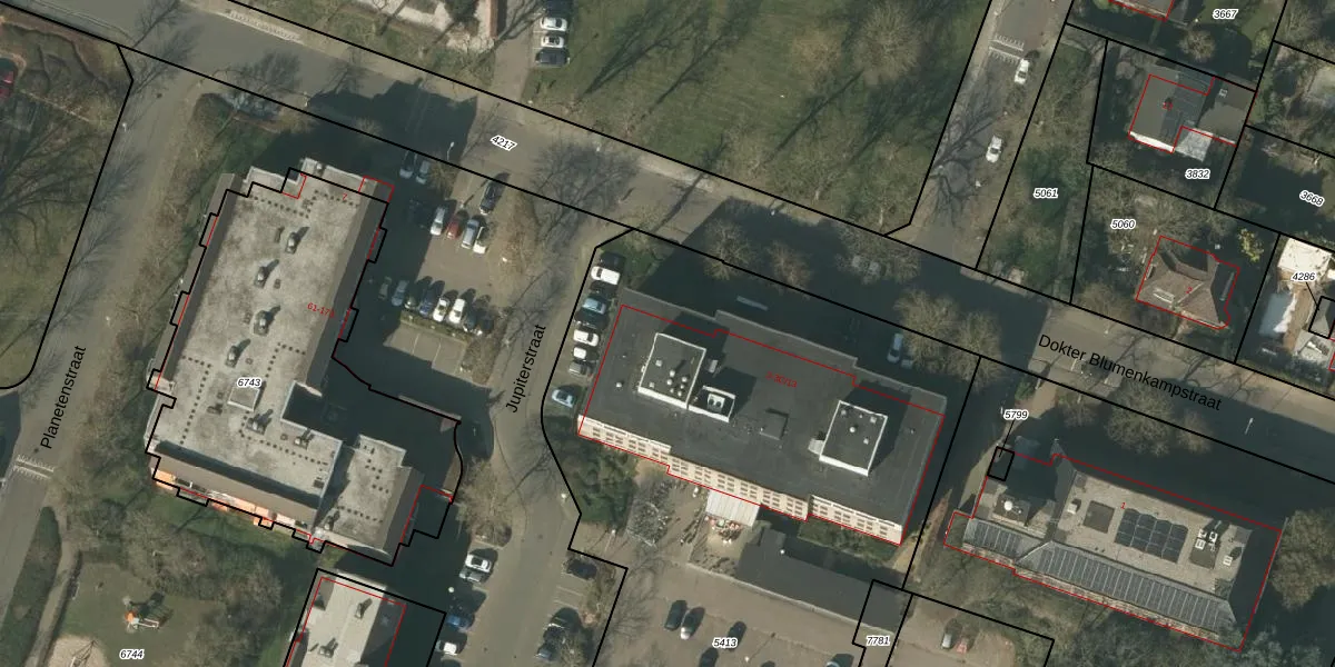 Het perceel waarop Dokter Blumenkampstraat 3-A-17 staat heeft een oppervlakte van 3550 m². Dit is een zeer groot perceel. De perceeloppervlakte wordt geregistreerd door het Kadaster. Gedetailleerde informatie over de maten van dit perceel kunt u vinden in het rapport Kadastrale kaart met maatvoering van Dokter Blumenkampstraat 3-A-17.