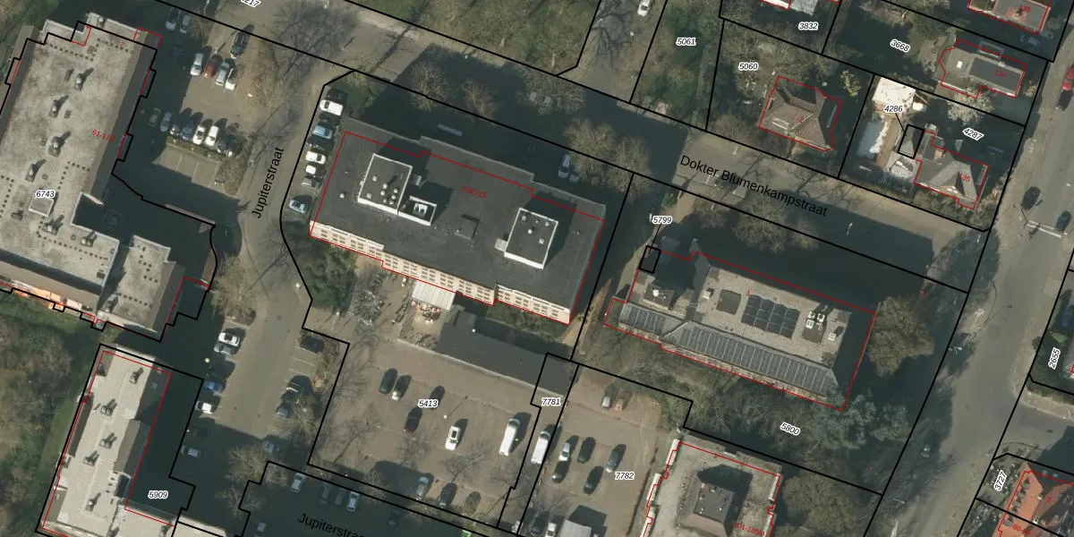 Het perceel waarop Dokter Blumenkampstraat 3-B-9 staat heeft een oppervlakte van 3550 m². Dit is een zeer groot perceel. De perceeloppervlakte wordt geregistreerd door het Kadaster. Gedetailleerde informatie over de maten van dit perceel kunt u vinden in het rapport Kadastrale kaart met maatvoering van Dokter Blumenkampstraat 3-B-9.
