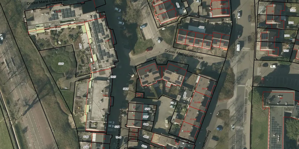 Het perceel waarop Dokter Mathijssenstraat 11 staat heeft een oppervlakte van 1620 m². Dit is een zeer groot perceel. De perceeloppervlakte wordt geregistreerd door het Kadaster. Gedetailleerde informatie over de maten van dit perceel kunt u vinden in het rapport Kadastrale kaart met maatvoering van Dokter Mathijssenstraat 11.