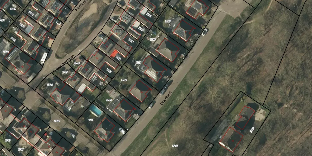 Het perceel waarop Driedistel 8 staat heeft een oppervlakte van 457 m². Dit is een groot perceel. De perceeloppervlakte wordt geregistreerd door het Kadaster. Gedetailleerde informatie over de maten van dit perceel kunt u vinden in het rapport Kadastrale kaart met maatvoering van Driedistel 8.