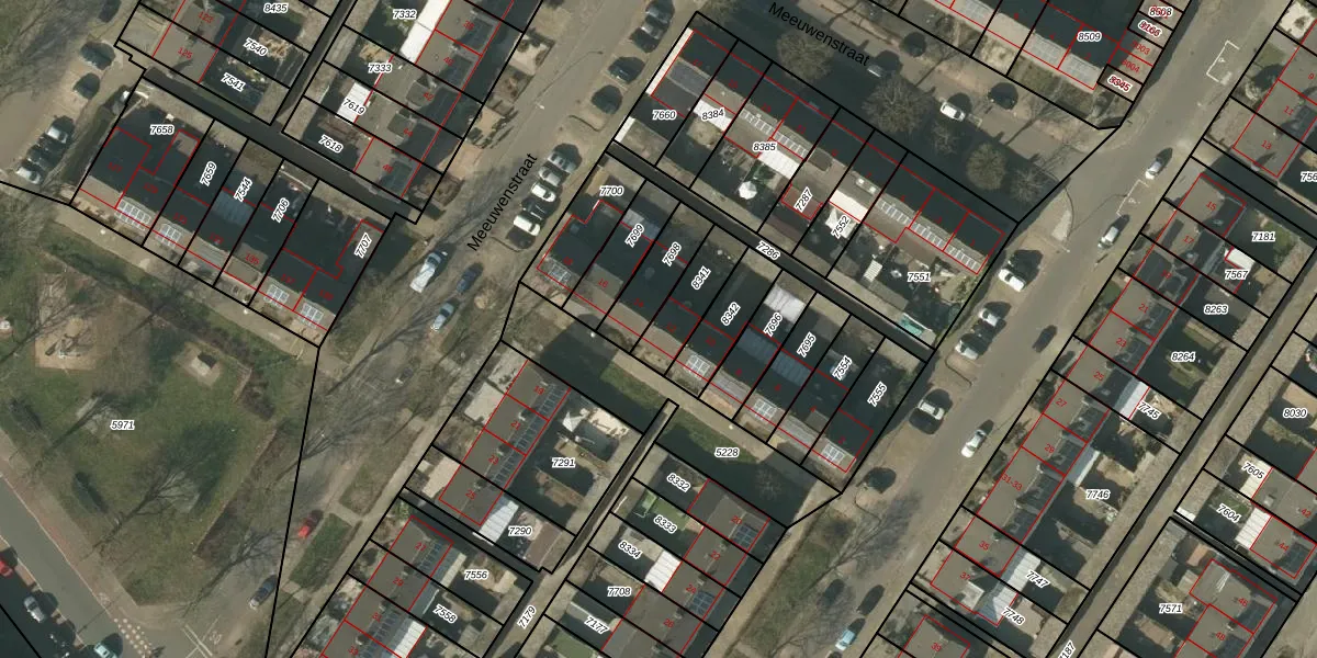 Eendenstraat 12 is gelegen op kadastraal perceel VLO00H8341. Deze kadastrale aanduiding is uniek en wordt gebruikt door het Kadaster om eigendomsrechten en andere zakelijke rechten vast te leggen. Het perceel maakt onderdeel uit van de kadastrale gemeente Venlo.