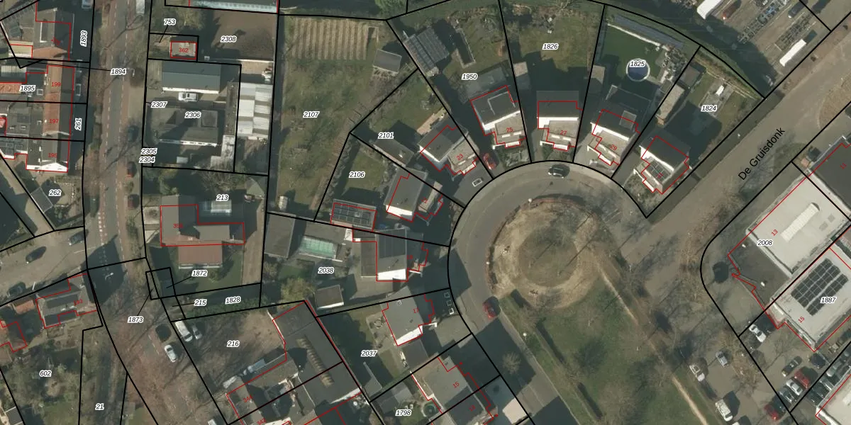 Gebruik de zoekbalk of klik op een perceel voor informatie over de adressen binnen dit perceel.