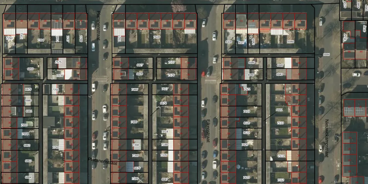 Gebruik de zoekbalk of klik op een perceel voor informatie over de adressen binnen dit perceel.