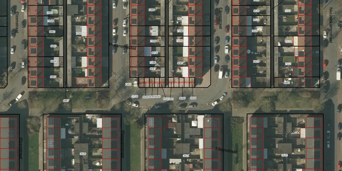 Het perceel waarop Eikenstraat 8000 staat heeft een oppervlakte van 19 m². Dit is een klein perceel. De perceeloppervlakte wordt geregistreerd door het Kadaster. Gedetailleerde informatie over de maten van dit perceel kunt u vinden in het rapport Kadastrale kaart met maatvoering van Eikenstraat 8000.