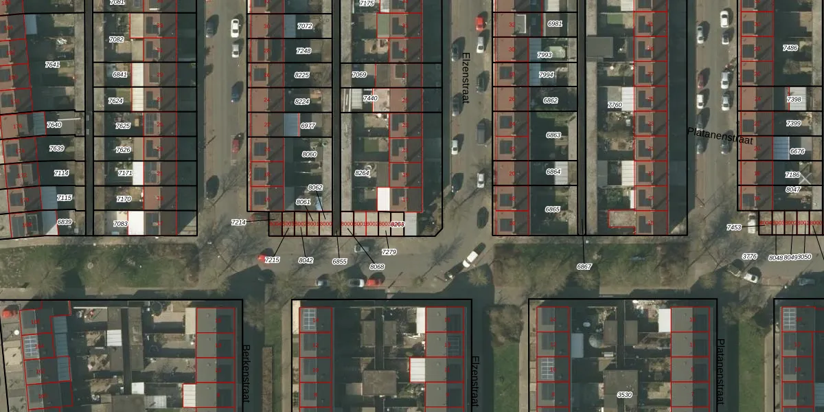 Het perceel waarop Elzenstraat 17 staat heeft een oppervlakte van 685 m². Dit is een groot perceel. De perceeloppervlakte wordt geregistreerd door het Kadaster. Gedetailleerde informatie over de maten van dit perceel kunt u vinden in het rapport Kadastrale kaart met maatvoering van Elzenstraat 17.