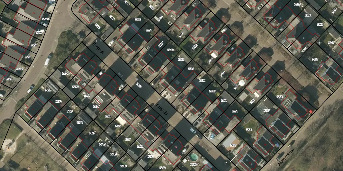 Ereprijs 13 is gelegen op kadastraal perceel VLO00D7290. Deze kadastrale aanduiding is uniek en wordt gebruikt door het Kadaster om eigendomsrechten en andere zakelijke rechten vast te leggen. Het perceel maakt onderdeel uit van de kadastrale gemeente Venlo.