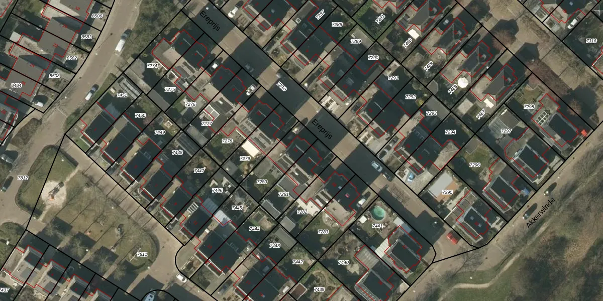 Ereprijs 14 is gelegen op kadastraal perceel VLO00D7280. Deze kadastrale aanduiding is uniek en wordt gebruikt door het Kadaster om eigendomsrechten en andere zakelijke rechten vast te leggen. Het perceel maakt onderdeel uit van de kadastrale gemeente Venlo.