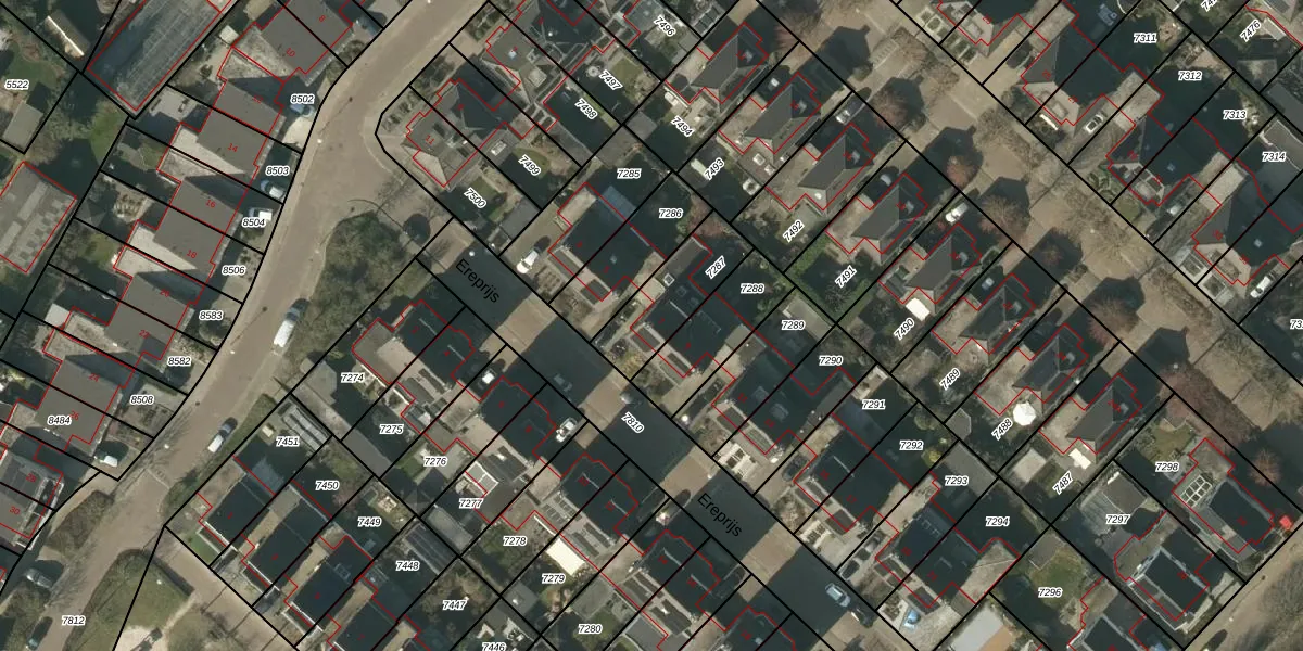 Ereprijs 7 is gelegen op kadastraal perceel VLO00D7287. Deze kadastrale aanduiding is uniek en wordt gebruikt door het Kadaster om eigendomsrechten en andere zakelijke rechten vast te leggen. Het perceel maakt onderdeel uit van de kadastrale gemeente Venlo.