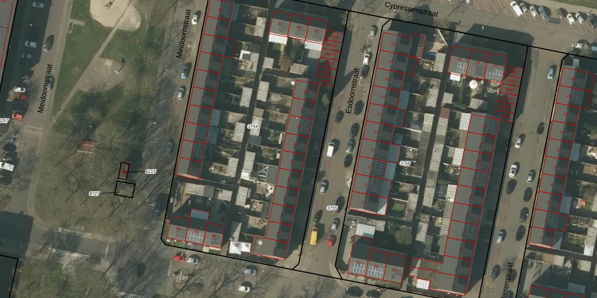 Esdoornstraat 13 is gelegen op kadastraal perceel VLO00M3754. Deze kadastrale aanduiding is uniek en wordt gebruikt door het Kadaster om eigendomsrechten en andere zakelijke rechten vast te leggen. Het perceel maakt onderdeel uit van de kadastrale gemeente Venlo.
