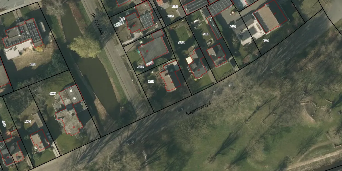 Gebruik de zoekbalk of klik op een perceel voor informatie over de adressen binnen dit perceel.