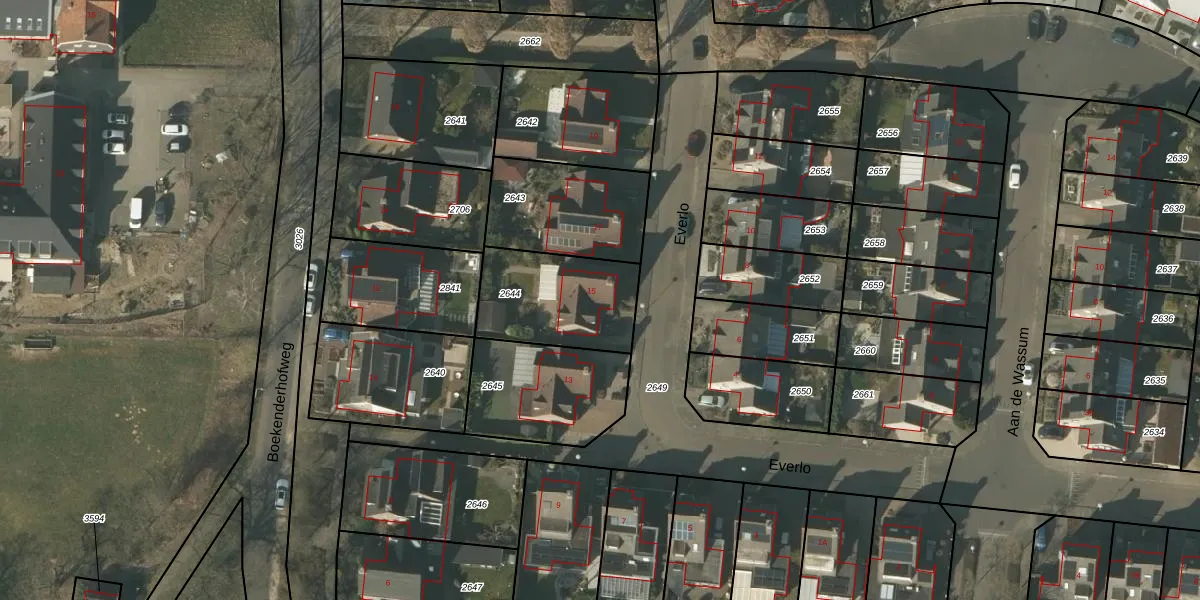 Everlo 15 is gelegen op kadastraal perceel VLO00N2644. Deze kadastrale aanduiding is uniek en wordt gebruikt door het Kadaster om eigendomsrechten en andere zakelijke rechten vast te leggen. Het perceel maakt onderdeel uit van de kadastrale gemeente Venlo.