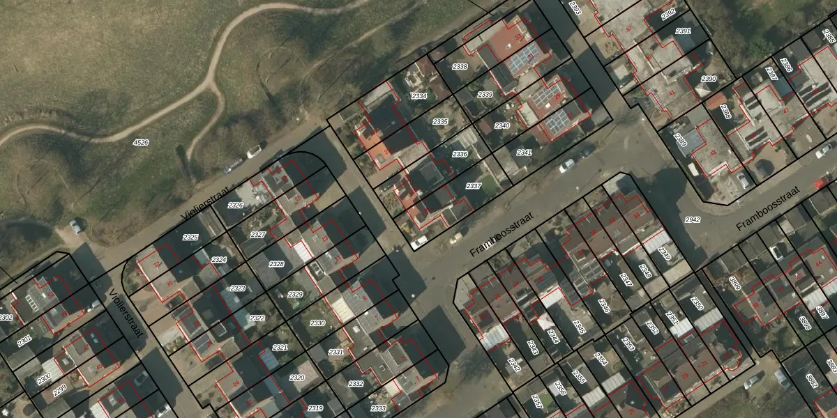 Framboosstraat 25 is gelegen op kadastraal perceel VLO00N2337. Deze kadastrale aanduiding is uniek en wordt gebruikt door het Kadaster om eigendomsrechten en andere zakelijke rechten vast te leggen. Het perceel maakt onderdeel uit van de kadastrale gemeente Venlo.