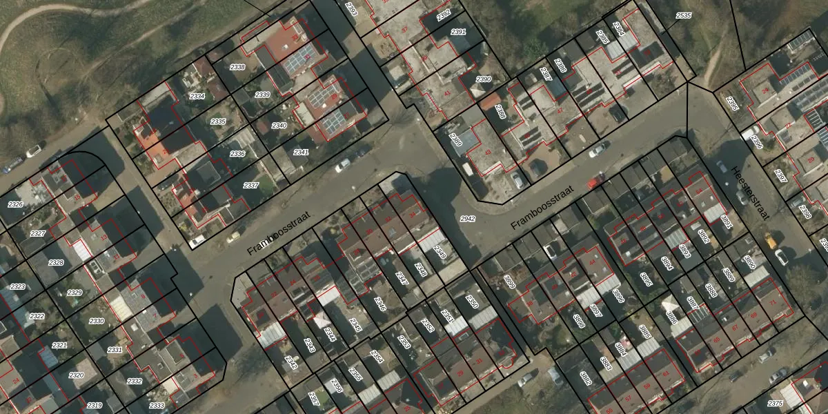 Framboosstraat 34 is gelegen op kadastraal perceel VLO00N2349. Deze kadastrale aanduiding is uniek en wordt gebruikt door het Kadaster om eigendomsrechten en andere zakelijke rechten vast te leggen. Het perceel maakt onderdeel uit van de kadastrale gemeente Venlo.