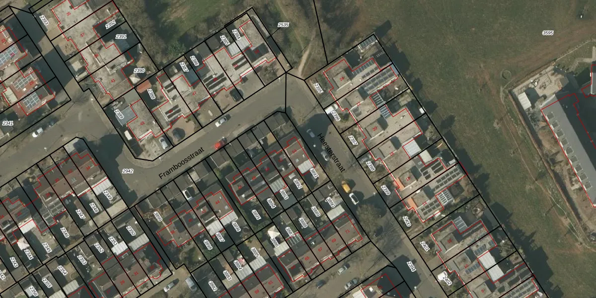 Framboosstraat 54 is gelegen op kadastraal perceel VLO00N3891. Deze kadastrale aanduiding is uniek en wordt gebruikt door het Kadaster om eigendomsrechten en andere zakelijke rechten vast te leggen. Het perceel maakt onderdeel uit van de kadastrale gemeente Venlo.