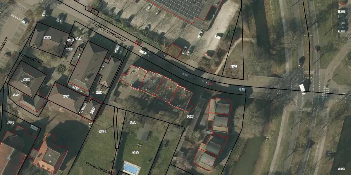 Franciscanenstraat 14 is gelegen op kadastraal perceel VLO00D7353. Deze kadastrale aanduiding is uniek en wordt gebruikt door het Kadaster om eigendomsrechten en andere zakelijke rechten vast te leggen. Het perceel maakt onderdeel uit van de kadastrale gemeente Venlo.